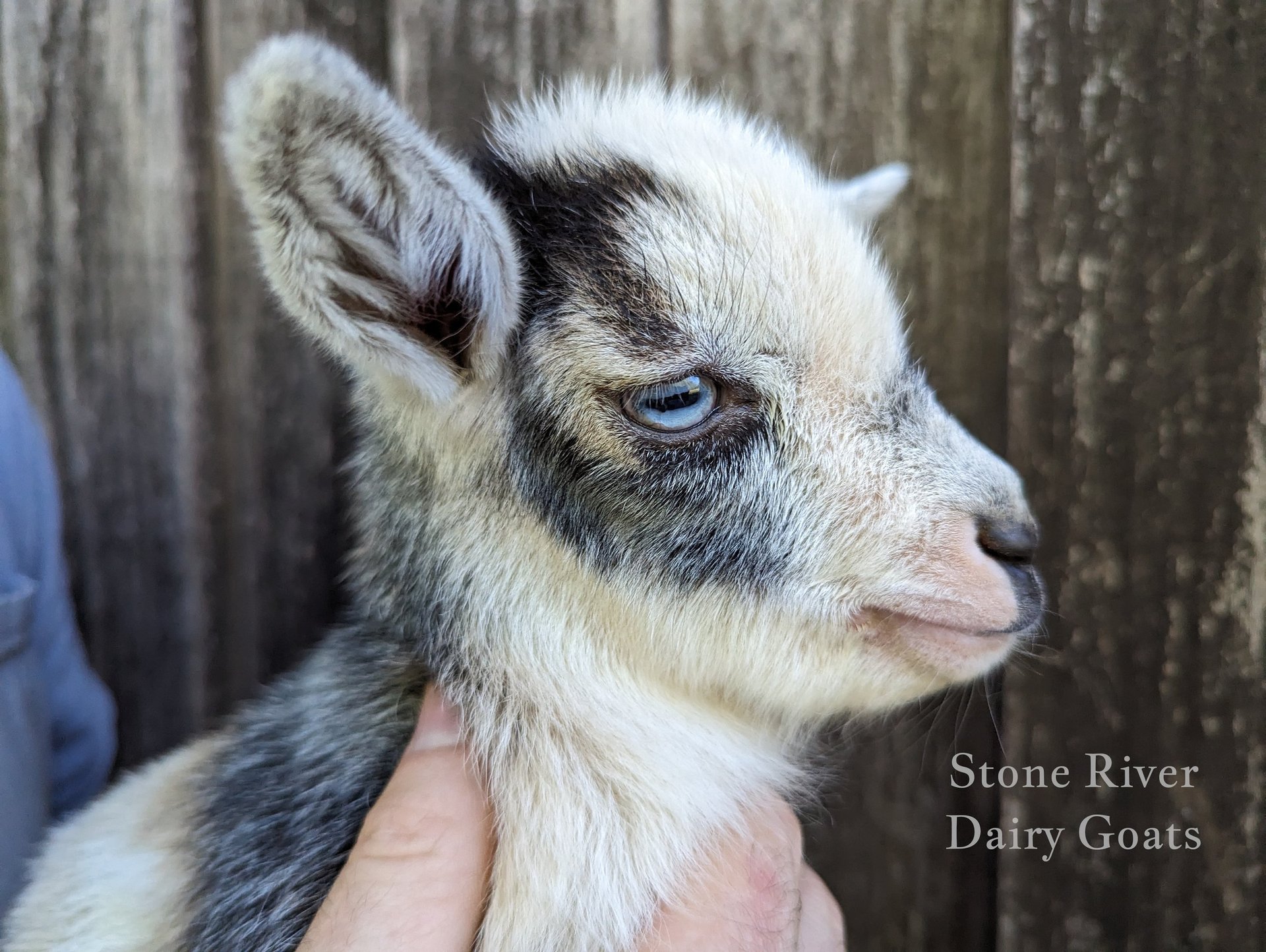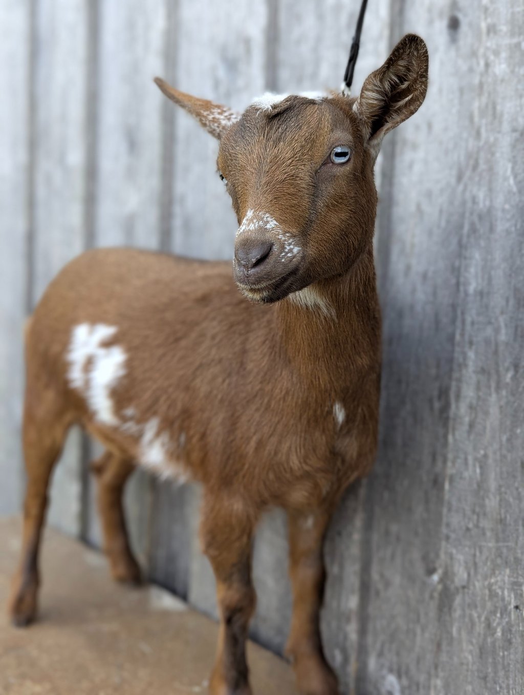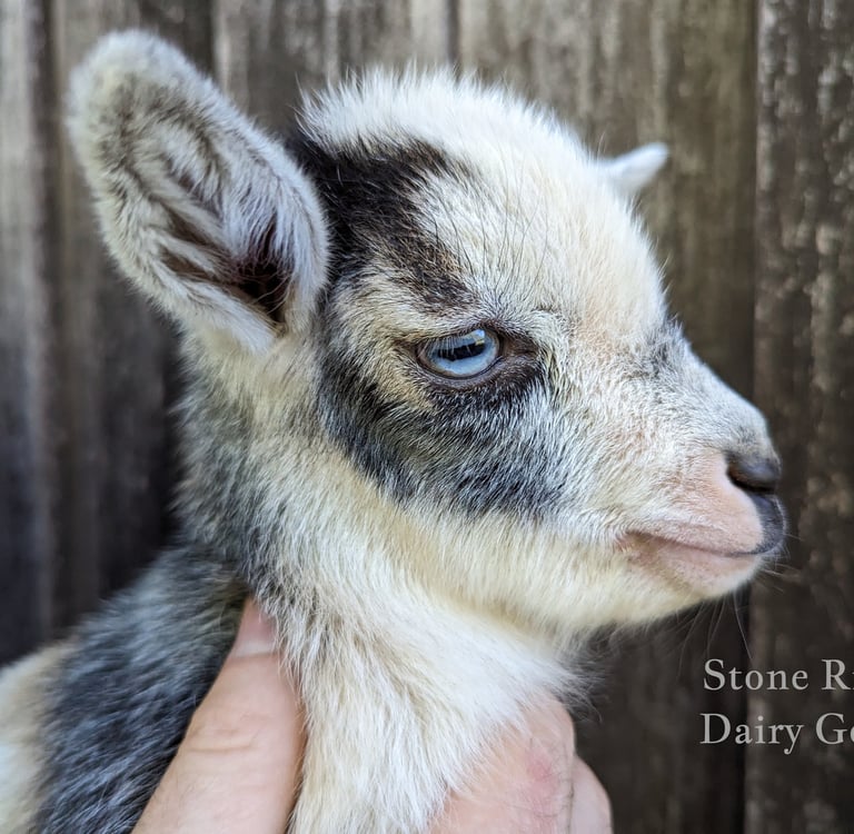 Description: Princess is a sweet and shy little girl! She has nice blue eyes and is growing beautifully. She has a nice conformation (her topline makes me stop and stare when she's out and about) and comes from our sweetest doe, who is a heavy milker and has previously been on milk test.