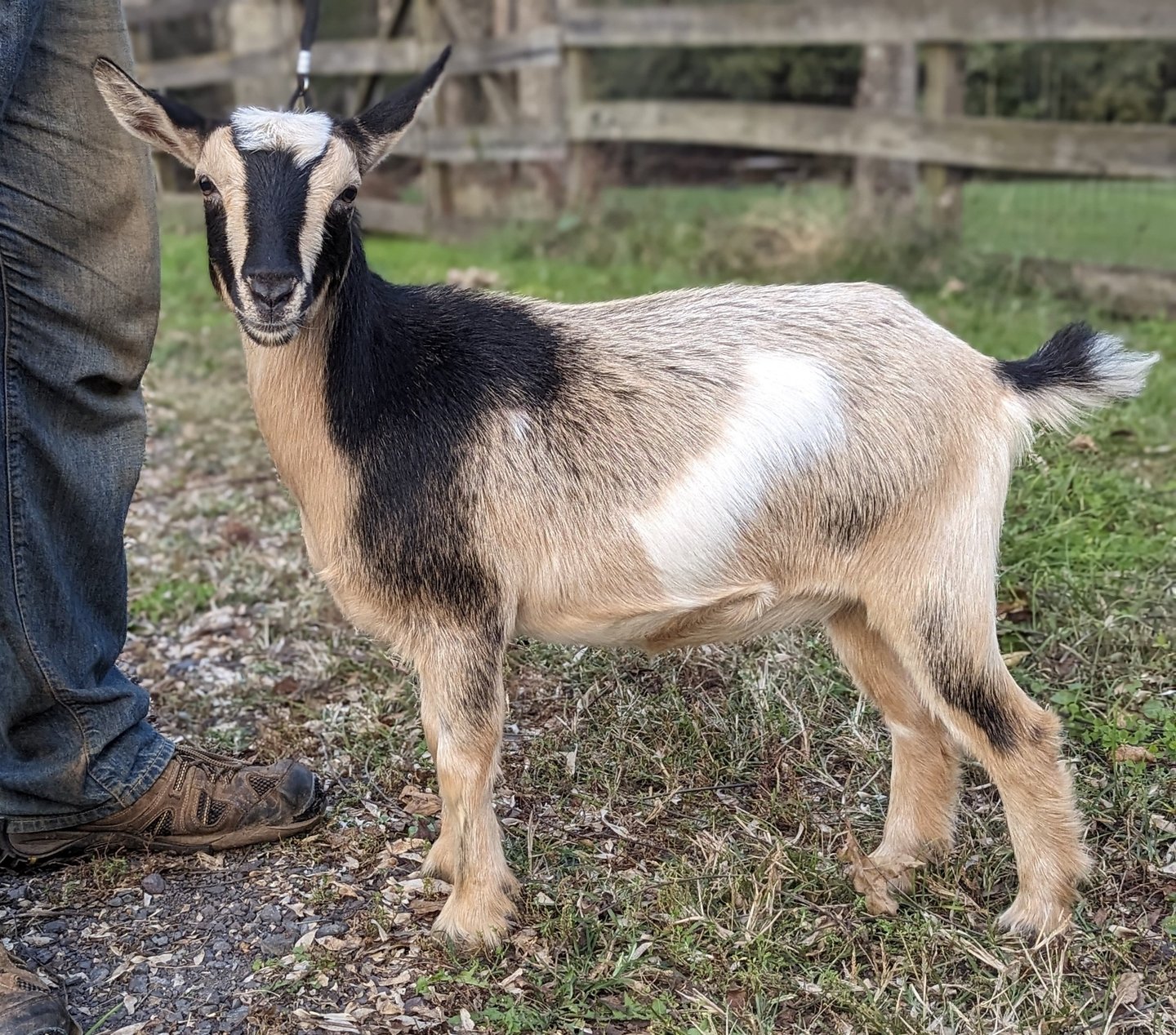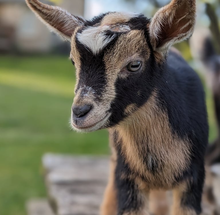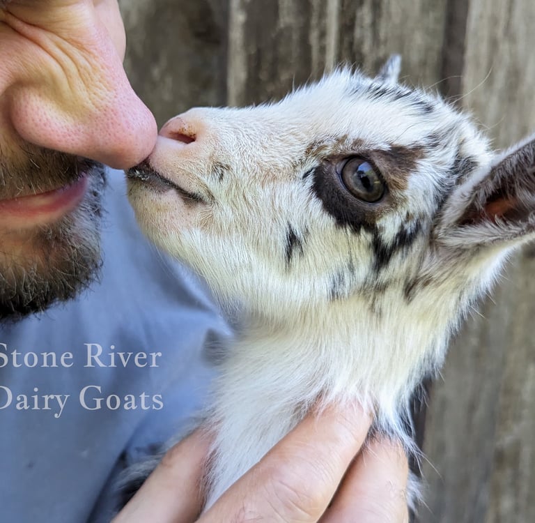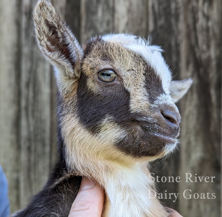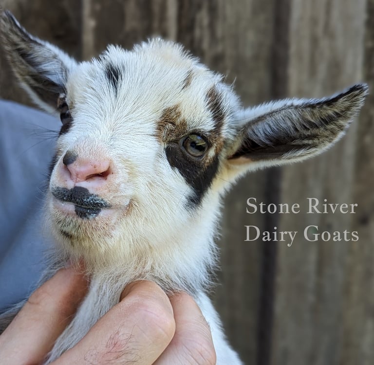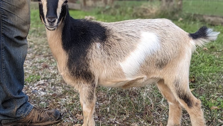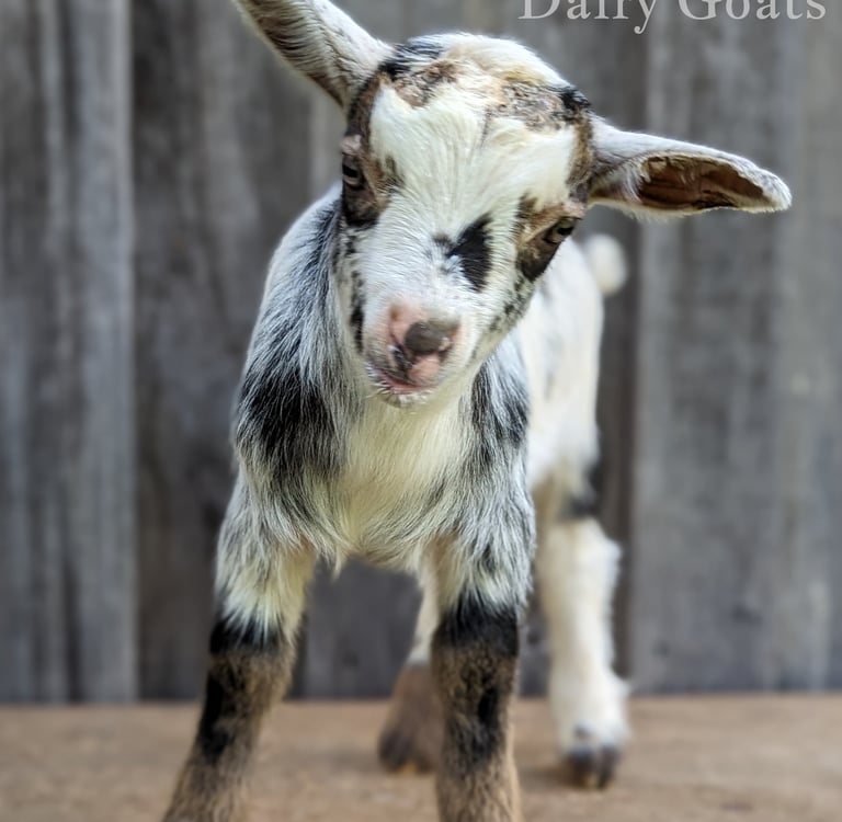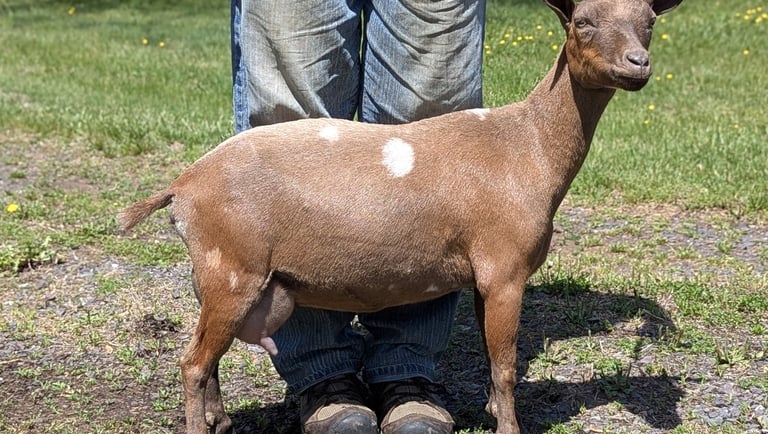 Description: Dot has a friendly personality and the smoothest and softest coat of all the 2024 babies. Even though she is soft, she loves to push the boys out of the way and play rough - my kind of girl! She is from our sweetest doe and sweetest buck - what a combo. I love hand milking her mama and expect Dot will be an excellent milker as well if she is bred.