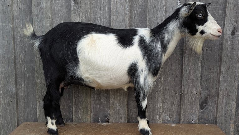 Description: This beautiful, super sweet girl will be available in-milk in fall 2024. She is a wonderful mama, an excellent milker, and an all-around goofy girl.