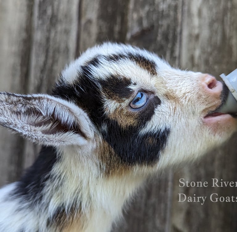 All of our babies receive individual attention and are well socialized to people. Each baby is also trained from birth on both a bottle and a lambar, so they are ready to go weaned, as bottle babies, or with a mama goat in milk (if she is available).